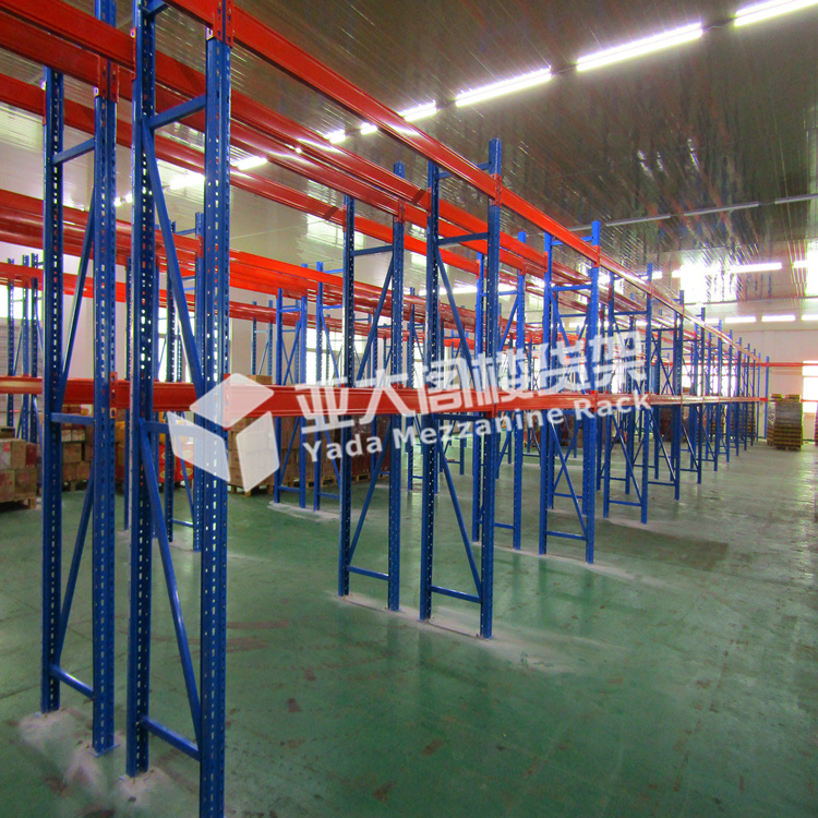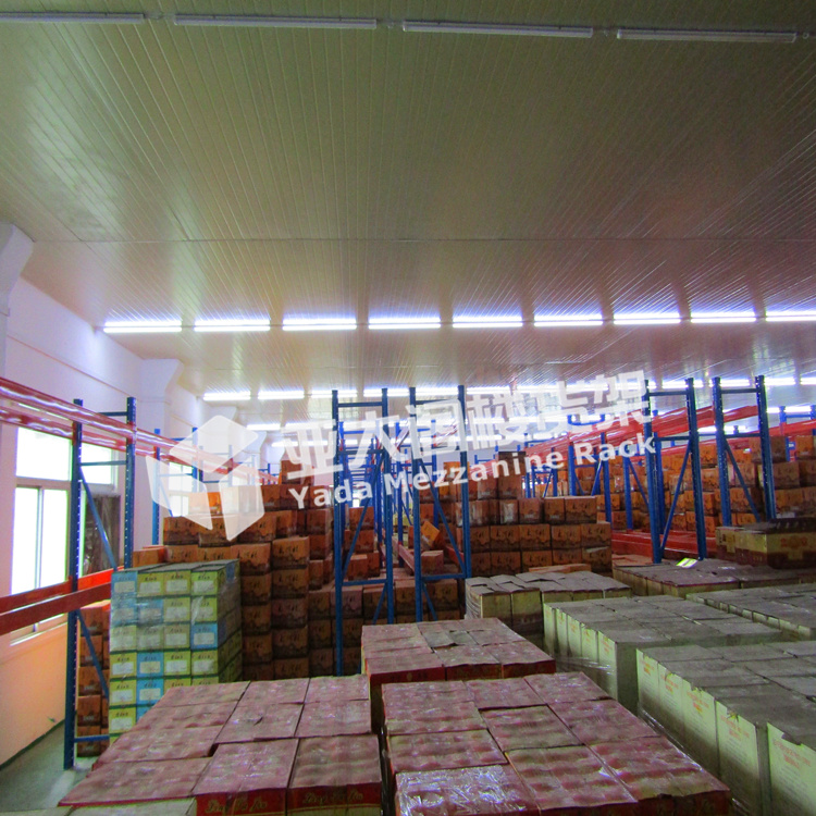 亞大貨架設(shè)備有限公司為懂香文化有限公司提供重型貨架100余組,貨架采用2層橫梁設(shè)計,每層承重2噸。貨架立柱采用70*90*2.0U型鋼,貨架橫梁使用50*140*1.5抱焊梁,小跨梁材料為40*40*1.5方管。因托盤貨架的特點,根據(jù)該司托盤1100*1100的托盤尺寸,我們設(shè)計的貨架尺寸為L2500*D1000*H5500,2層橫梁貨架可放置3層貨物,提高倉庫容積率的同時,也減少了使用成本,是重型倉庫貨架使用的典型案例。