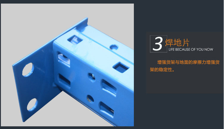 2、立柱由熱軋板折出多個(gè)角度而成,故貨架的承重力大。